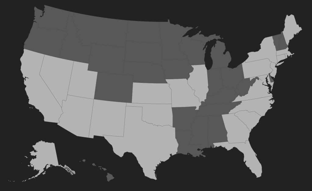 Alaska, Arizona, California, Connecticut, District of Columbia, Florida, Georgia, Illinois, Kansas, Maine, Maryland, Massachusetts, Missouri, Nevada, New Jersey, New Mexico, New York, NorthCarolina, Oklahoma, Pennsylvania, RhodeIsland, SouthCarolina, Texas, Utah, Virginia